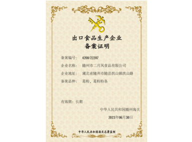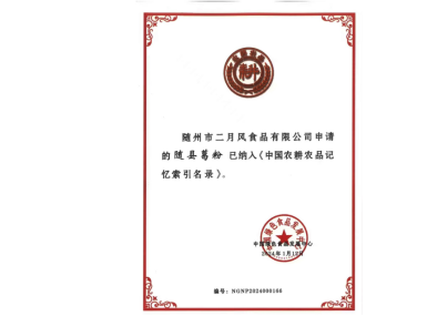農(nóng)耕農(nóng)品索引目錄證書(shū)-隨縣葛粉